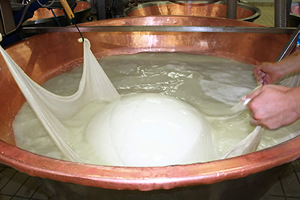 管理が行き届いた工場で、伝統的製法に従って製造されたフレッシュチーズは、その後、イタリア国内の熟成庫で熟成され、「グランモラビア=素晴らしいモラビア」という名を冠した熟成ハードチーズとなります。